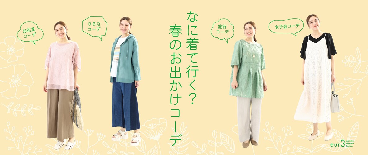 eur3(エウルキューブ)は、「心地よくきれい」自分らしいスタイルを持ち、オシャレを楽しみたい女性へきれいでいて心からリラックスできる着心地と上質感を大切にしたアイテムで普段の生活シーンからお出かけシーンまで、トータルな着こなしを提案するラージサイズブランドです。