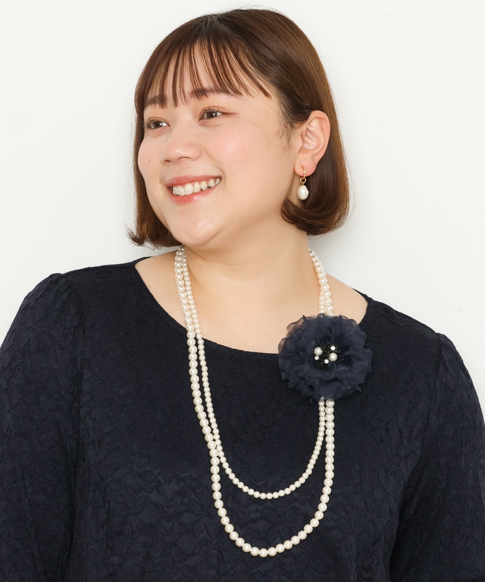 ジャケットは黒のパイピングが引き締め効果と縦長効果を強調。レースのワンピースと合わせたセレモニースタイル。