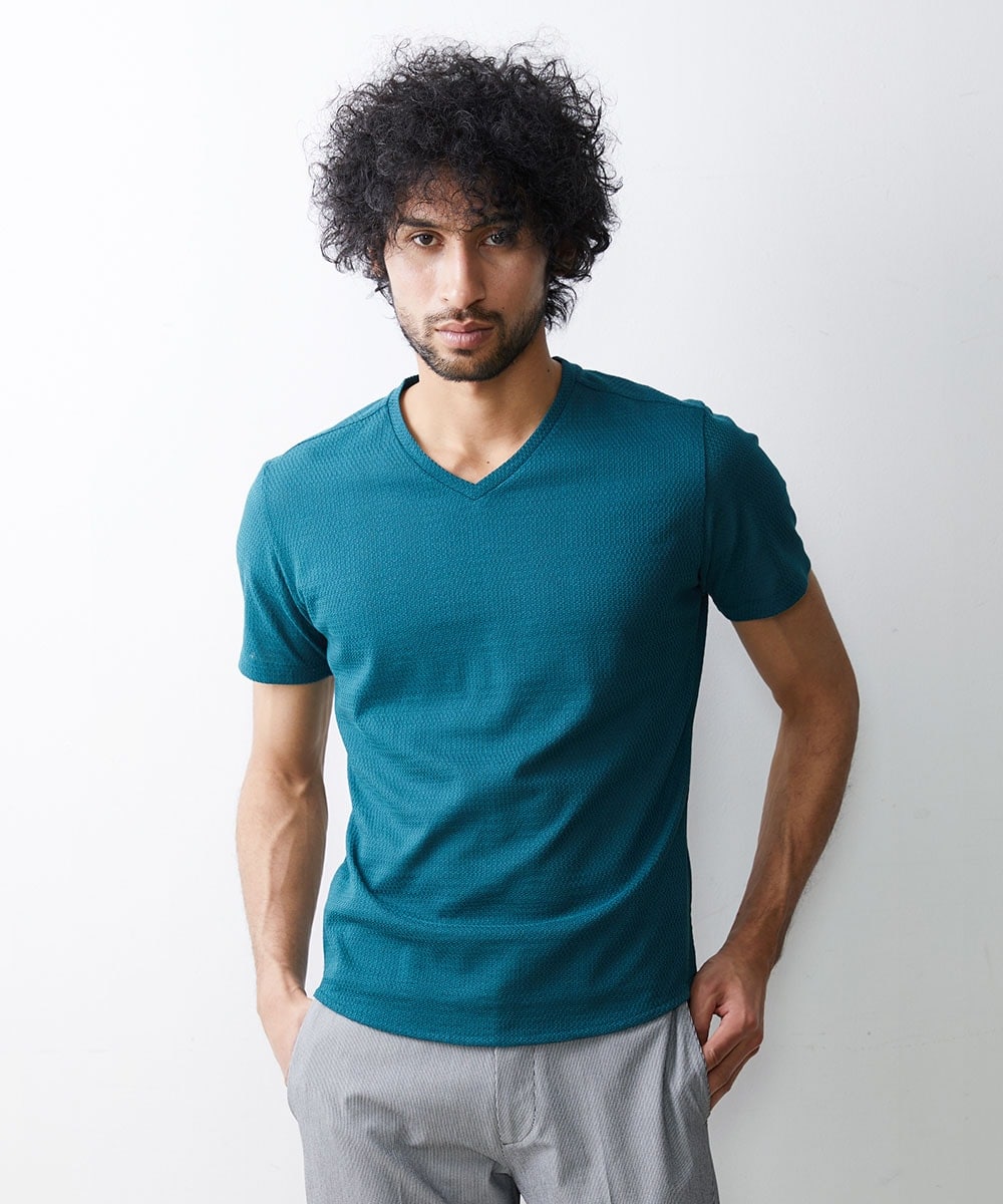 今回は、グリーンのカットソーにブルーのストライプのシャツを羽織った初夏のスタイル♪