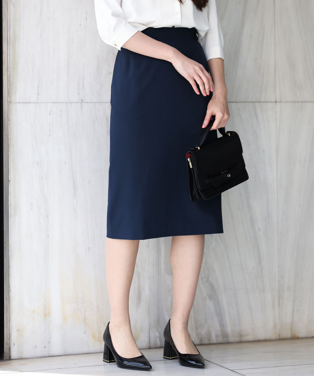 カラースクエア プリント2wayブラウス 前後どちらでも着用可能な2WAYデザイン。 パールボタンが上品さと華感をプラスして くれます。 普段使いはもちろん、オフィスやデート コーデにと幅広いスタイリングに活躍して くれるアイテムです。 サイズ38 セミタイトスカート ウエストのゴールドの釦がポイント。 後ろ半ゴムも、程よくやわらかくタイト 過ぎない綺麗なシルエットです。 サイズ38