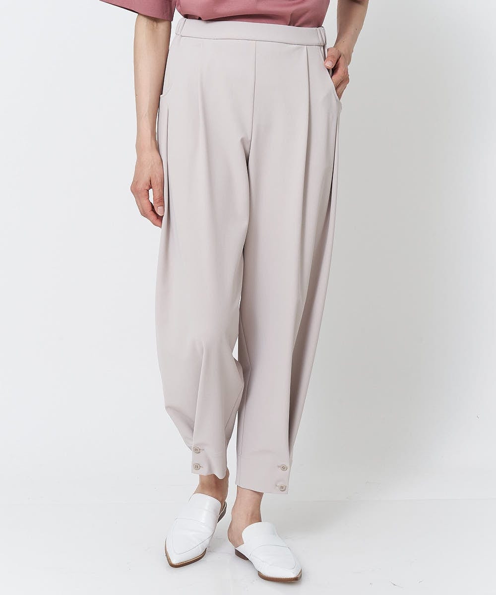 ヘムボタンパンツはタック入り、テーパード、ウエストゴムでゆったり楽なはき心地‼︎