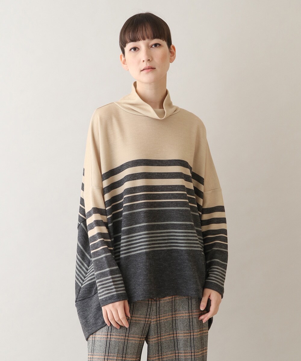 コレクションモチーフのボーダーをプリントしたチュニックです。少し厚めのジャージ素材のため暖かくこれからのシーズンに活躍します。ルーズ感のあるネックが窮屈感がなく嬉しいです。ピッチを変えたボーダーがスタイリングにアクセントをプラスします。ヒップが隠れるゆったりシルエットで一枚でさらっと着こなせます。