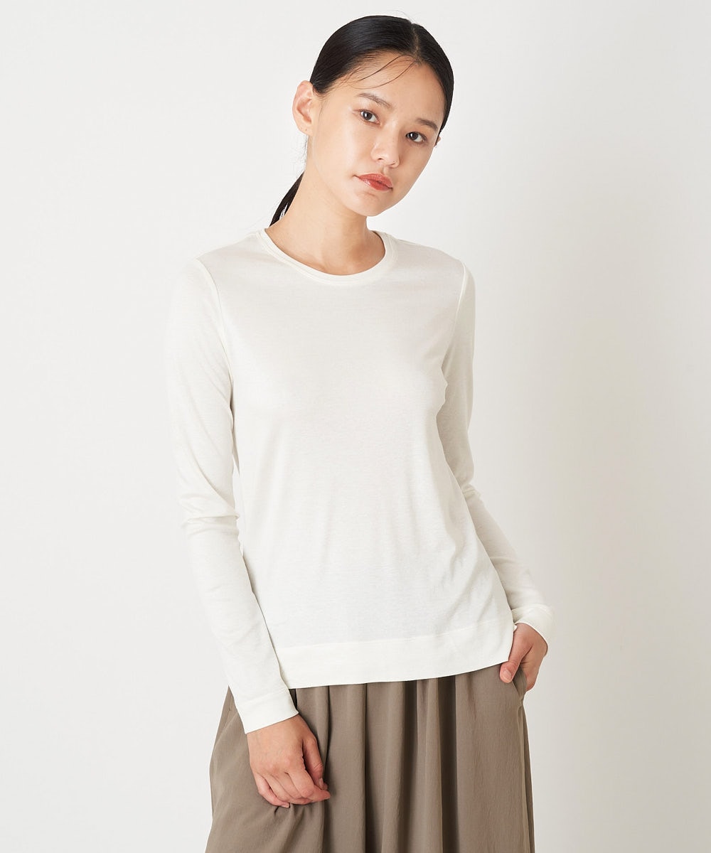 ☆ベーシックなフォルムとしなやかで優 しい素材感がインナーとしても最適なテキスタイル。