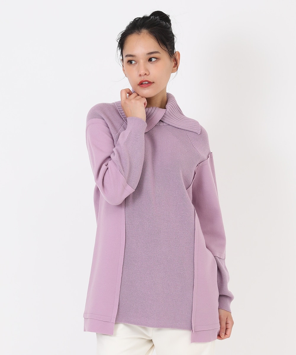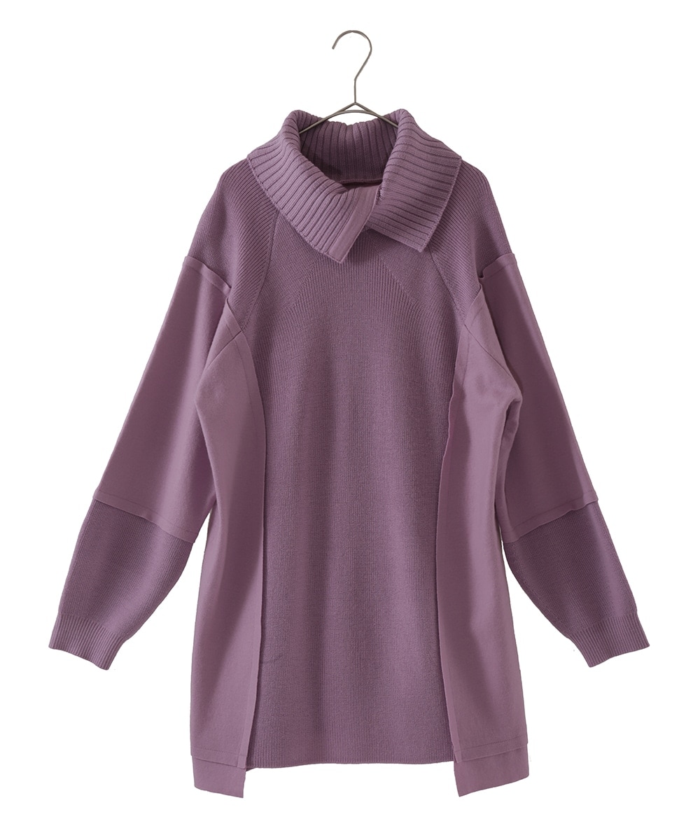 お襟が可愛い薄手のコートは長い季節活躍する一枚です。大きめの衿が女性らしい印象の着心地の良いウール100%のチュニックニットにツィードを3Dプリントした履き心地抜群のレギンスパンツを合わせました。