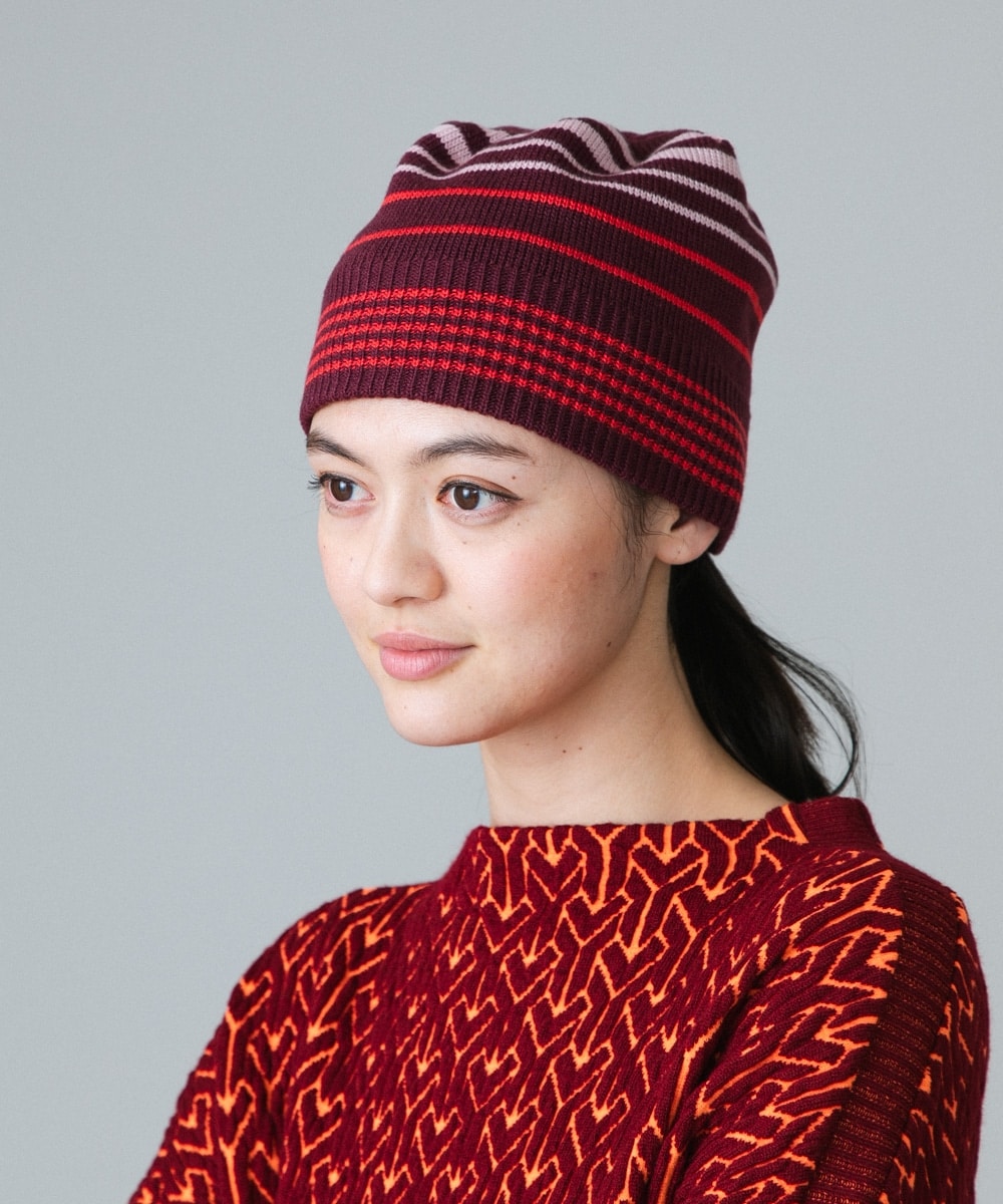 【日本製/洗える】ボーダーニットリバーシブルキャップ