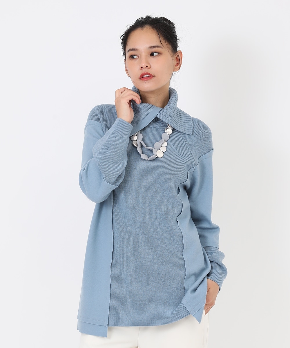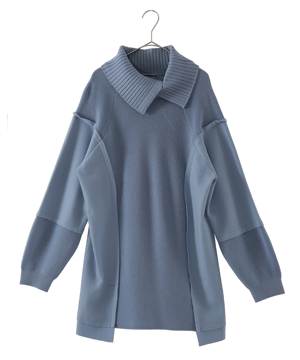 美シルエットのショートダウン。大きめの重ね衿が女性らしさ生む優しい印象のチュニックニットに裏起毛の暖かく着心地の良いパンツを合わせました。