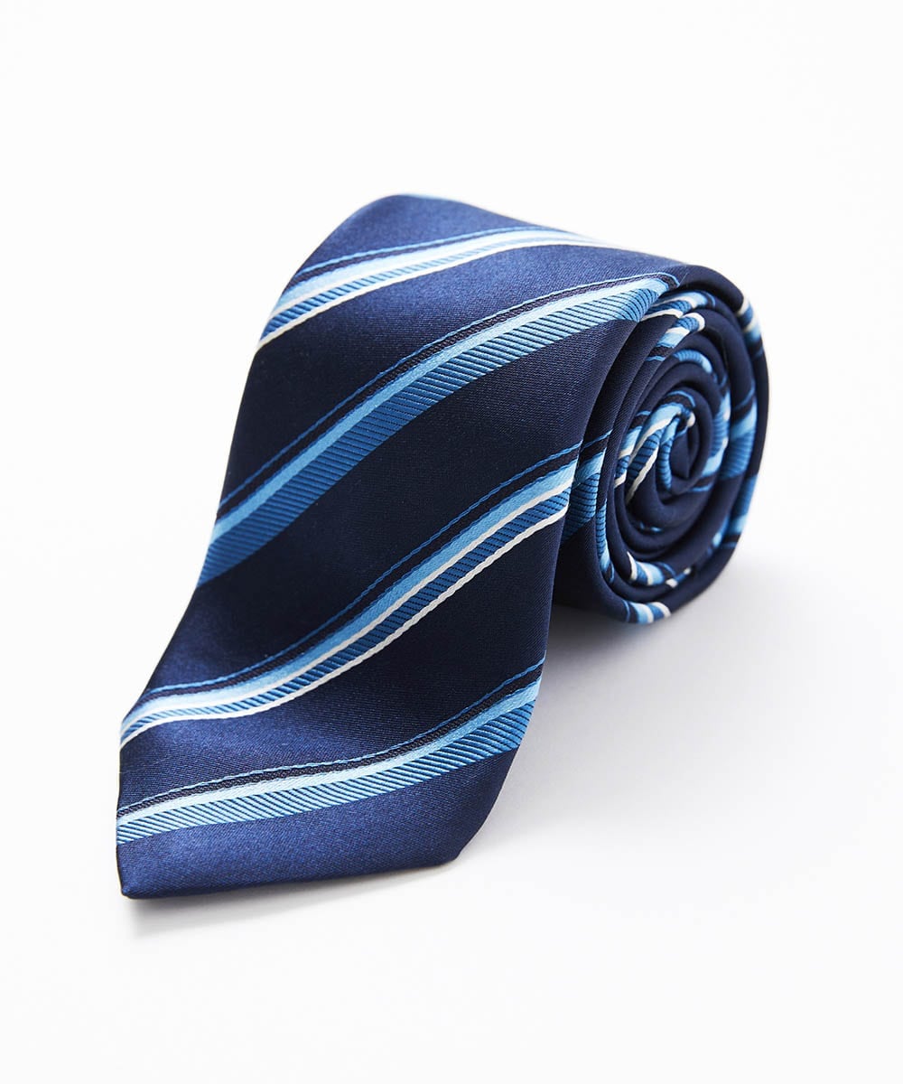 ネイビーのセットアップにブラックのシンプルなコートを羽織れば、上品な大人のお仕事スタイルになります。