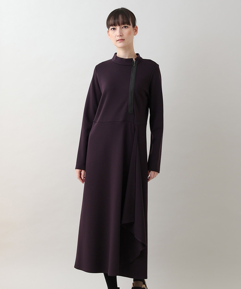 なっていて、流れるような綺麗なシルエットもおすすめポイントになっています。ポンチ素材はあたたかいので、冬のお出かけにも気軽に着ていただけるワンピースです。家で洗濯していただけるお手入れ簡単商品なのも、嬉しいポイントですね。