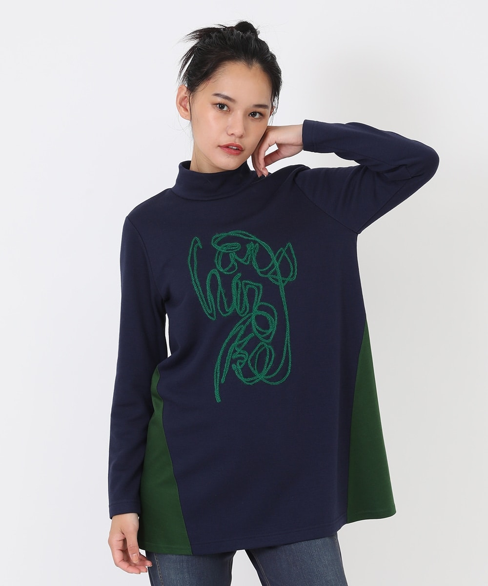 カットソーは、前身頃にモヘヤで柄が入っていて、Aラインのチュニックなので、動きやすいです。パンツは、裏起毛のレギパンのフルレングスです。動きやすく、暖かいです。