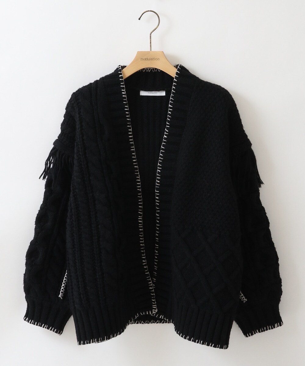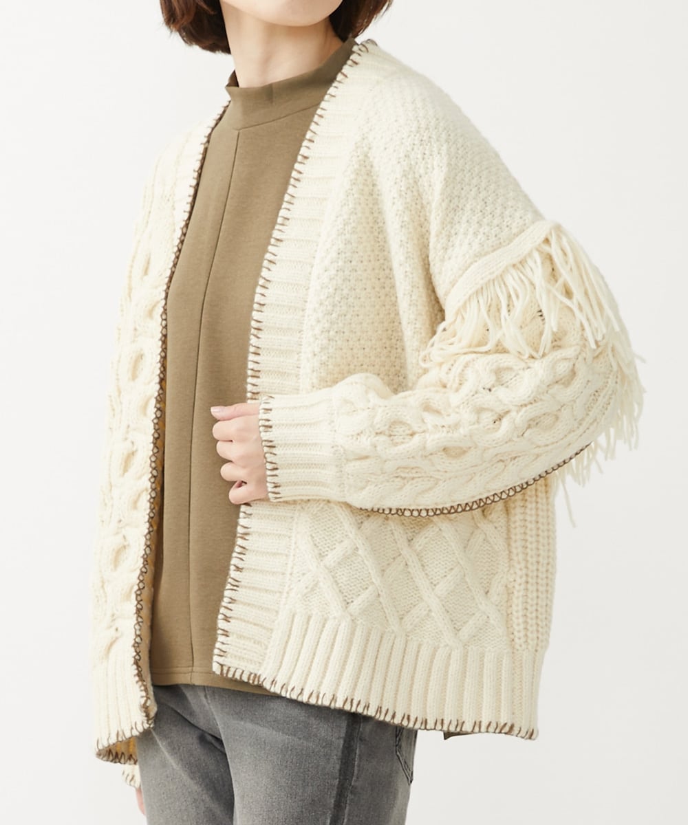 袖のフリンジと裾ステッチが冬らしく可愛いカーディガン!