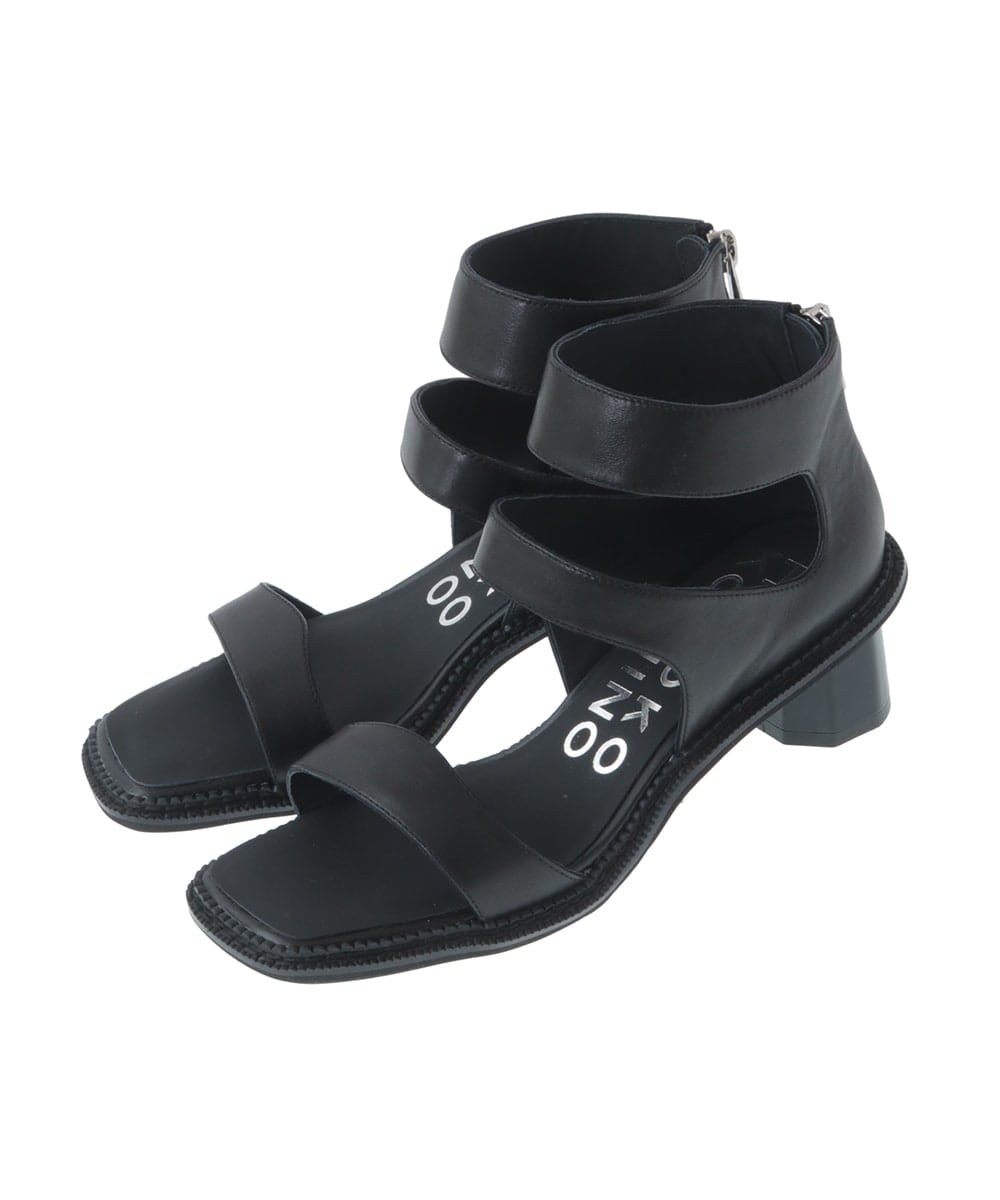 踵のヒールが円形でとっても個性的で素敵なバックファスナーサンダルです。
