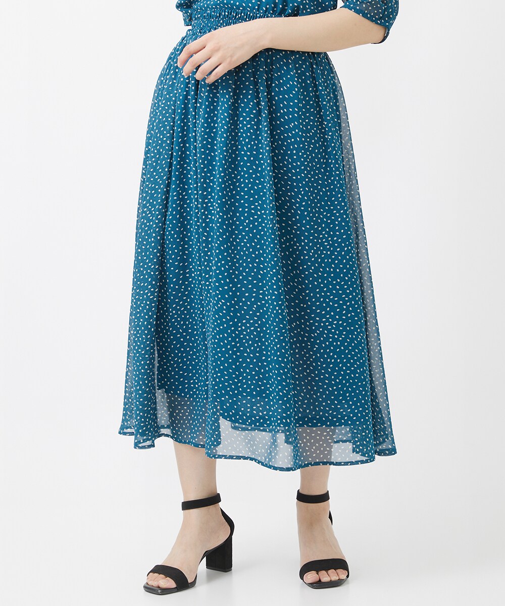 【小さいサイズ】モダンドット柄シフォンスカート/丈の長さが選べる/洗える