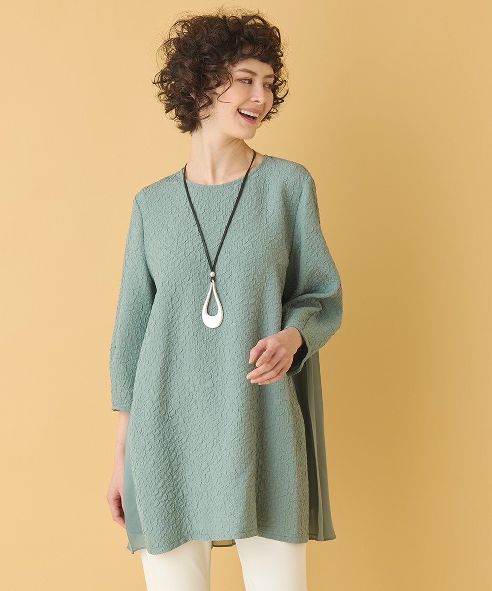 ふくれジャカードプリーツジョイントチュニック /洗える