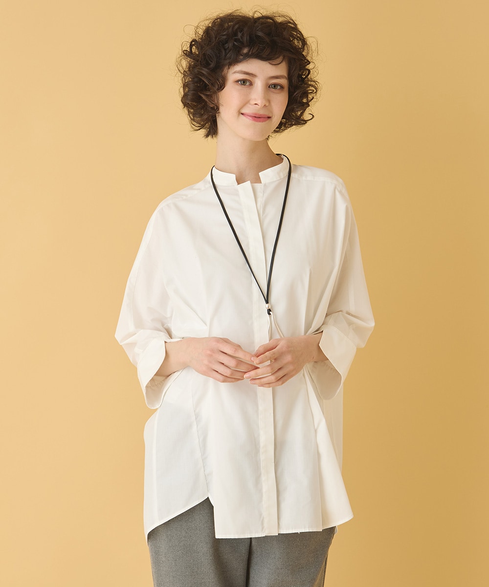 【大きいサイズ】バンドカラータックデザインシャツ /洗濯機で洗える
