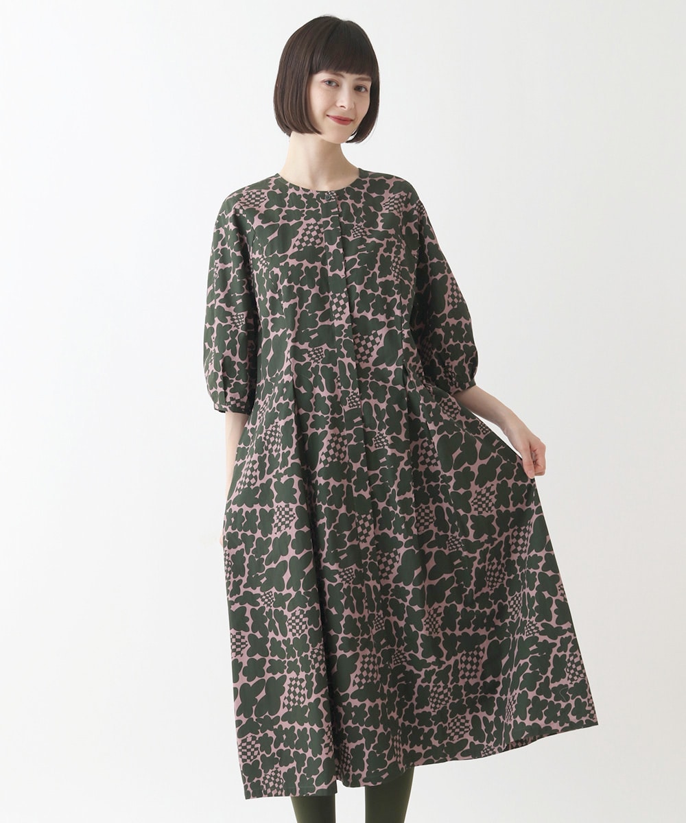 幾何フラワーコンシャスシルエットワンピース /洗える