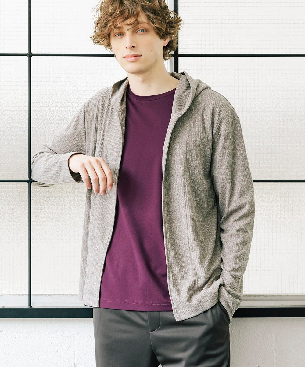 テレコ素材ですぐ乾くので夏場の羽織としてもバッチリ!