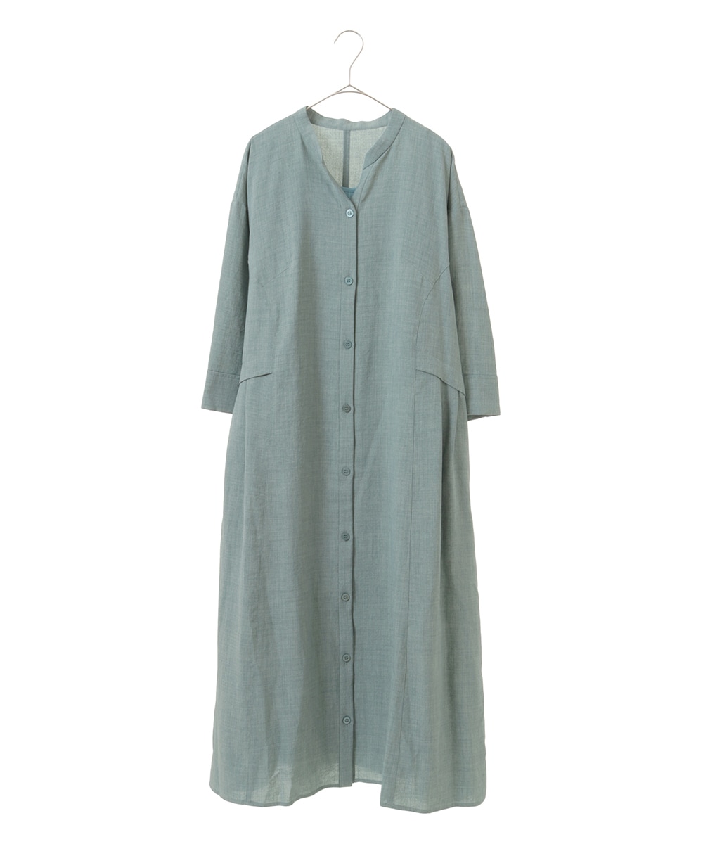 リネンタッチの清涼感のあるワンピース。ボタンを外してパッと羽織ればサマになる1枚です。