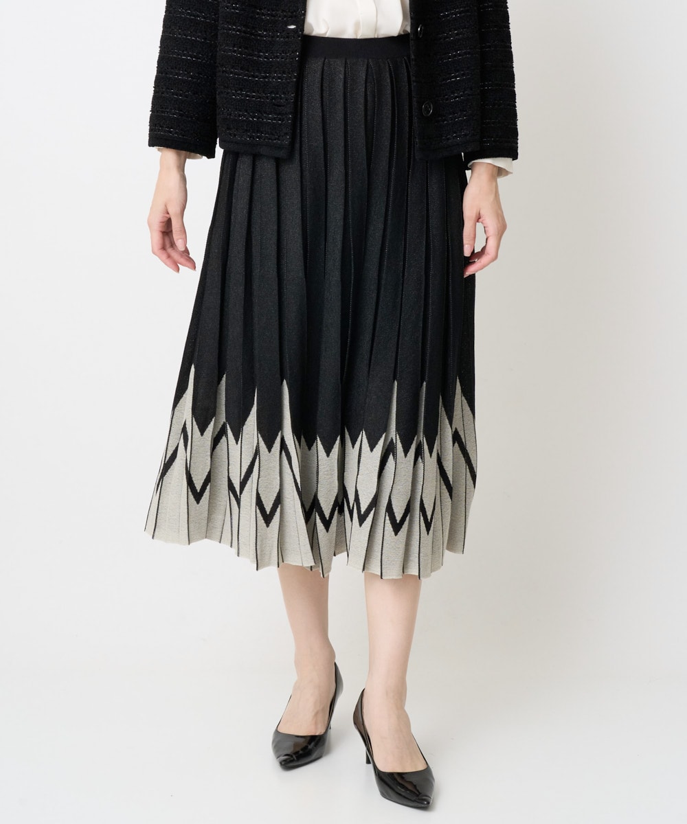 着用感:ウエスト総ゴムで着脱しやすくストレスフリー、お腹周りを締め付けない着心地のよさです。キレイに広がるニットプリーツがエレガントな印象♬ プリーツが縦のラインを強調して、スタイルアップが叶います♪