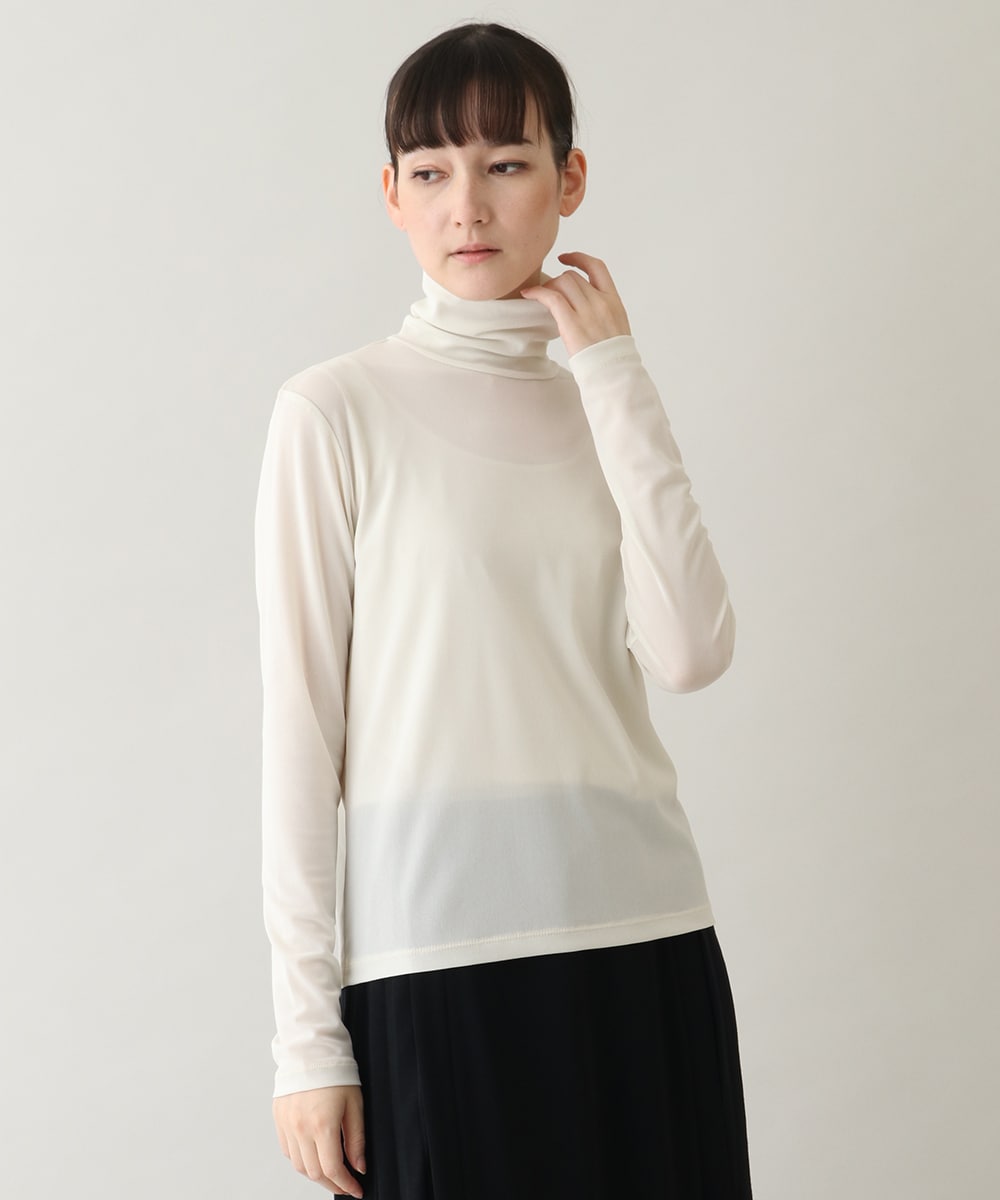 ストレッチチュールハイネックプルオーバー/日本製/洗える