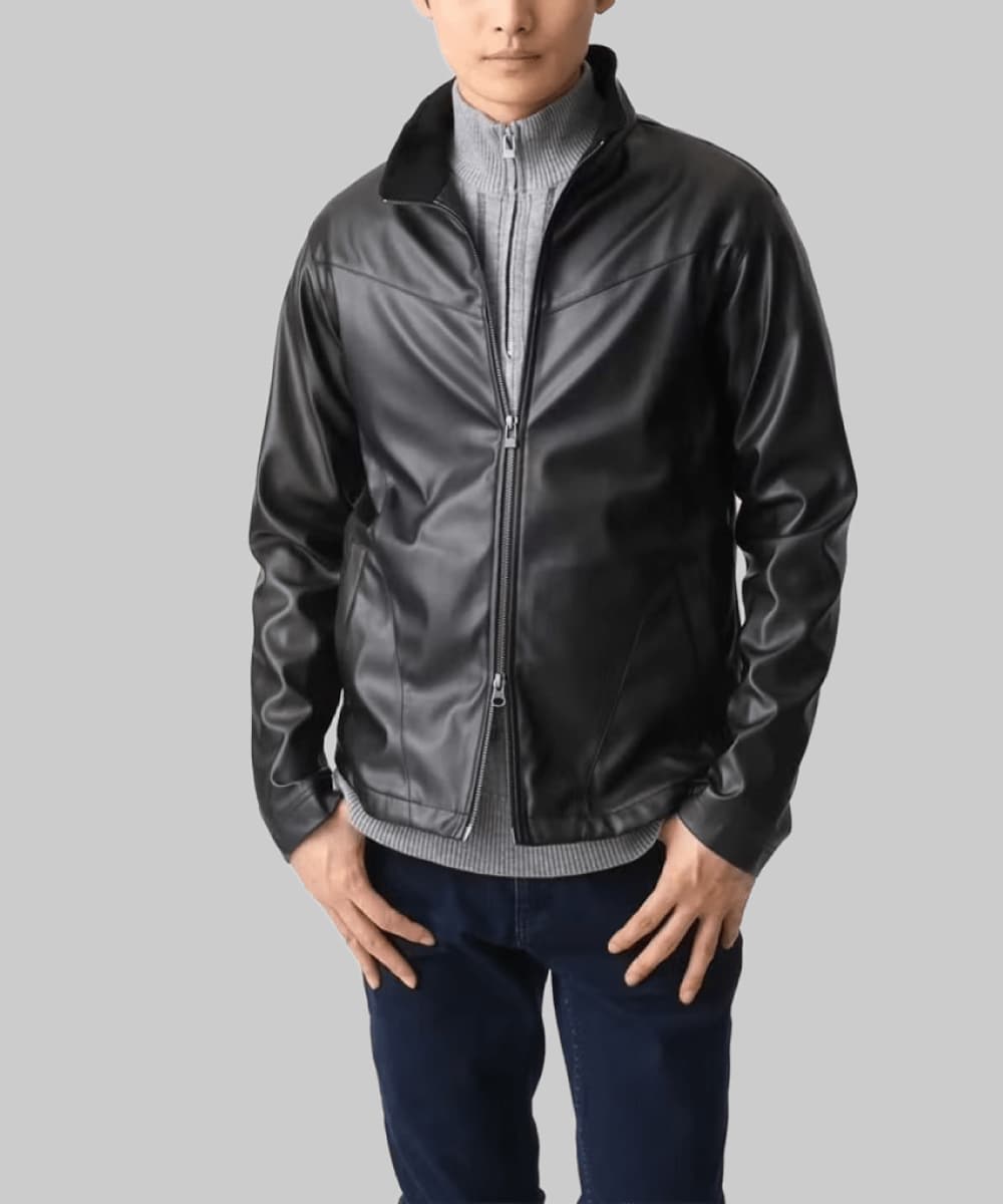 【残りわずか/在庫限り/秋春兼用/洗える】スタンドカラーシャツブルゾン/合成皮革