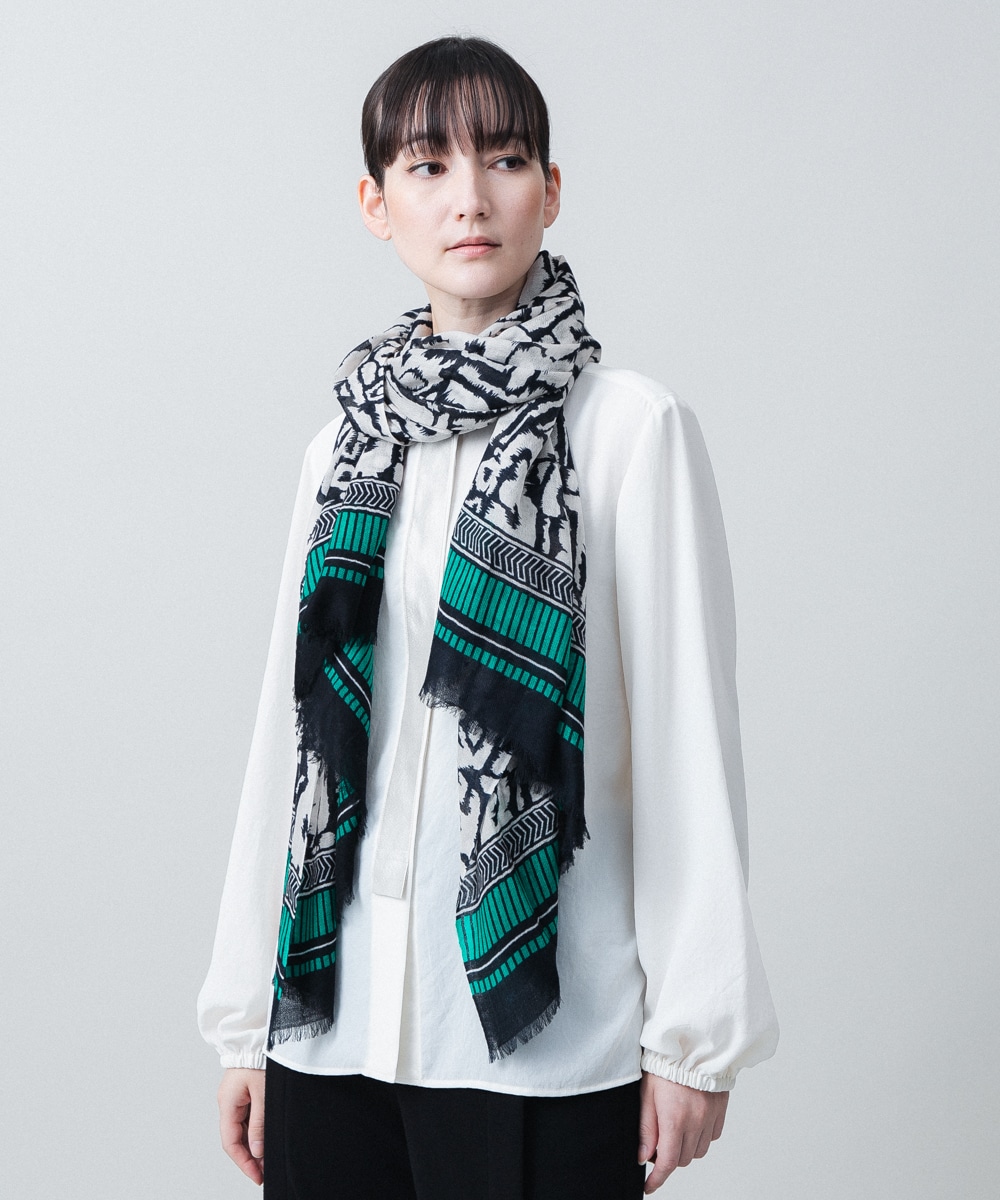 チュニックはコットンウールの風通ジャガード。軽く薄手でも暖かく、立体的なジャガードが特徴の人気素材。すっぽりかぶるデザインで着物袖のような袖や柔らかさのある落ち感が素適です。重ね着のカラーで楽しんで。