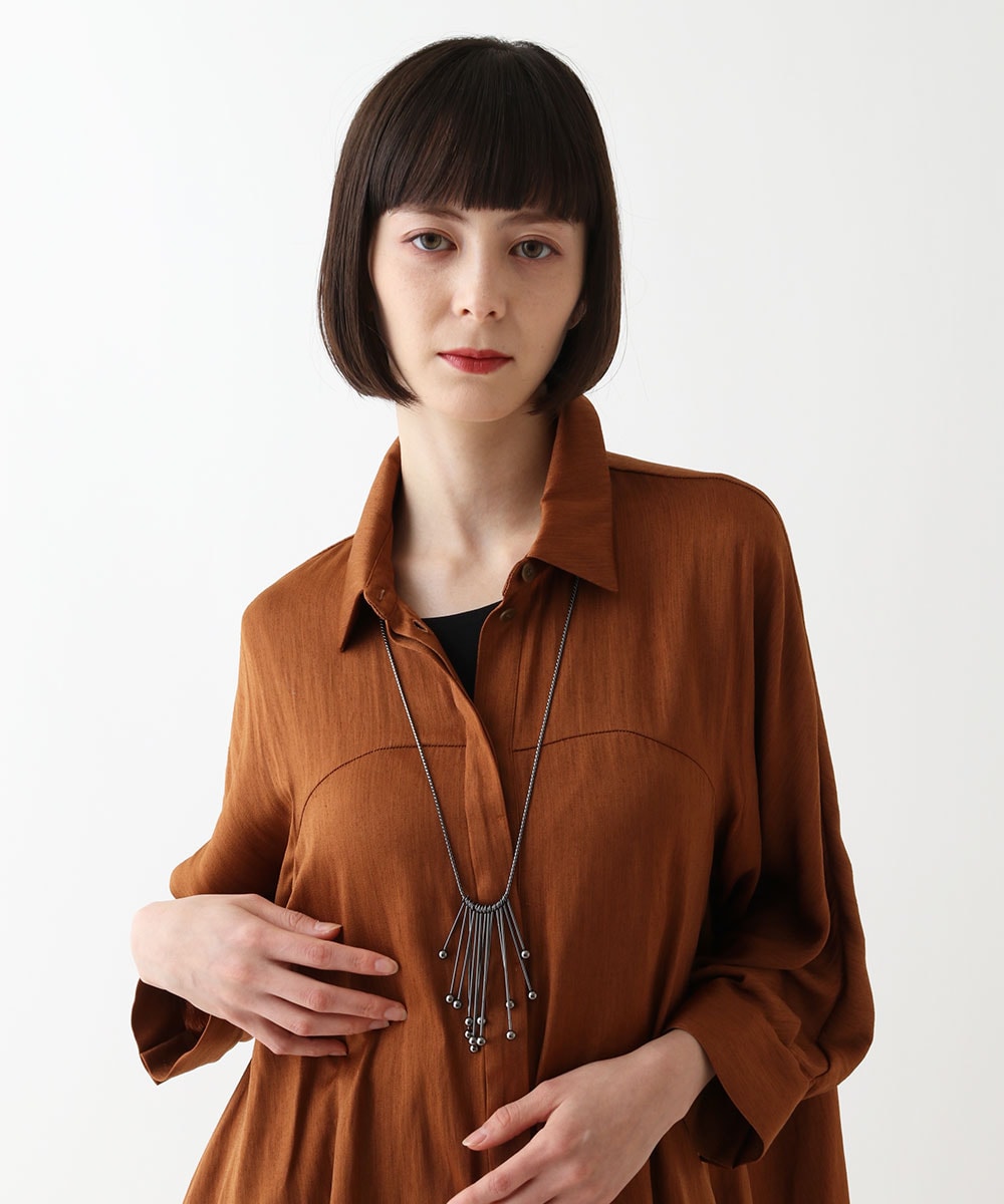 カットソーは身頃が圧縮スムースで衿と袖、裾などニット編地をジョイントしたアイテムで一枚で着てもインナーとしても使える便利なアイテムです。少し内側に入ったスリットもポイントです。