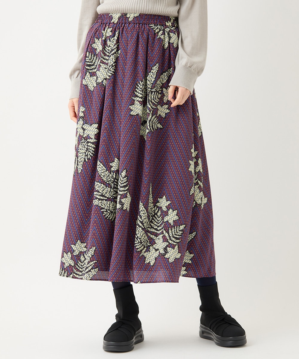 【大きいサイズ】幾何ボタニカルプリントスカート /洗濯機で洗える