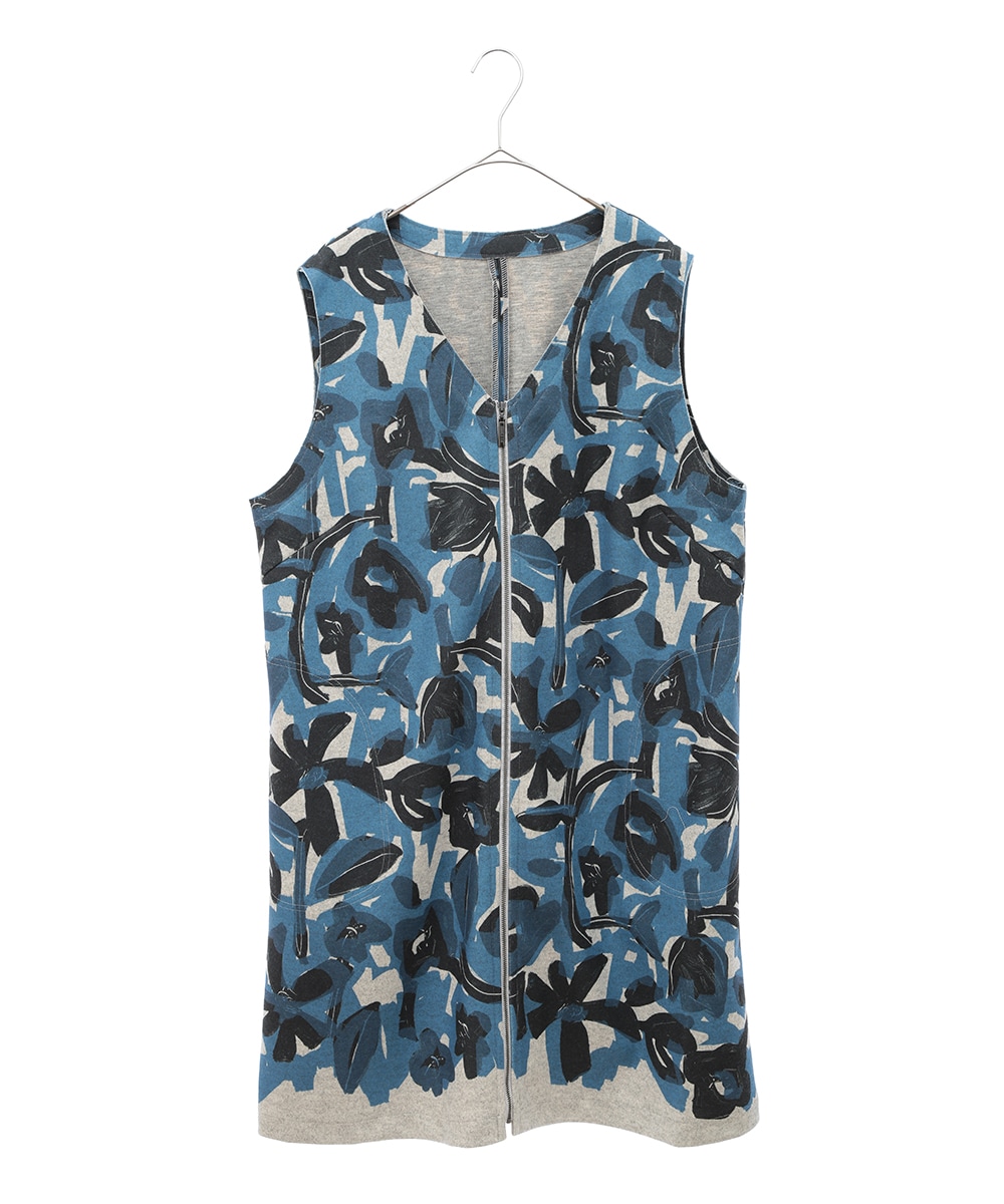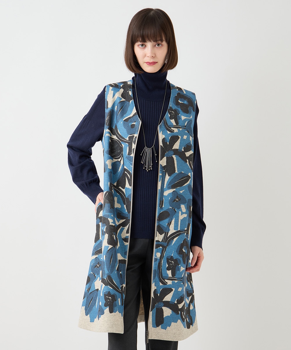【大きいサイズ】フラワー柄ジップアップロングベスト /洗える