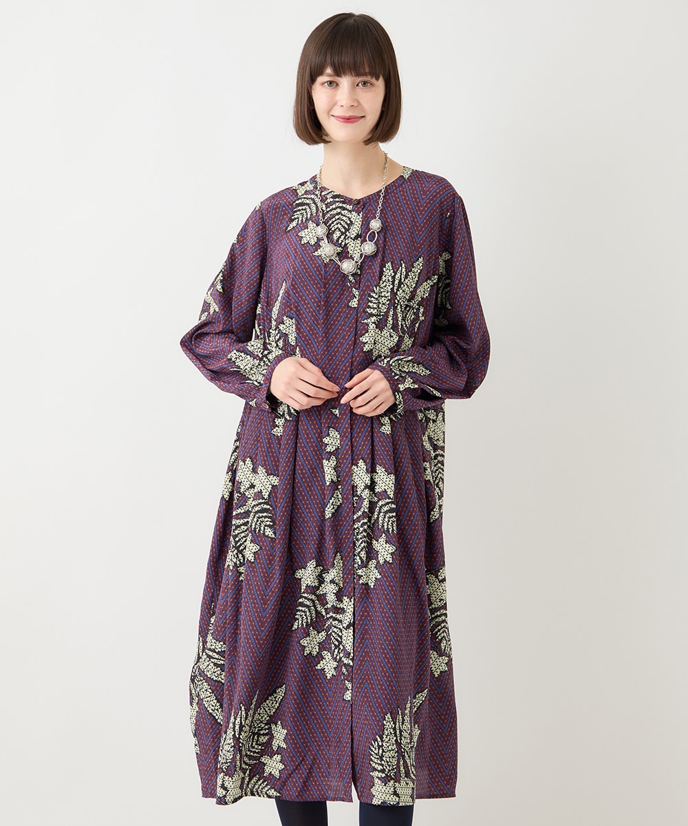 印象な幾何ボタニカルプリントワンピース!