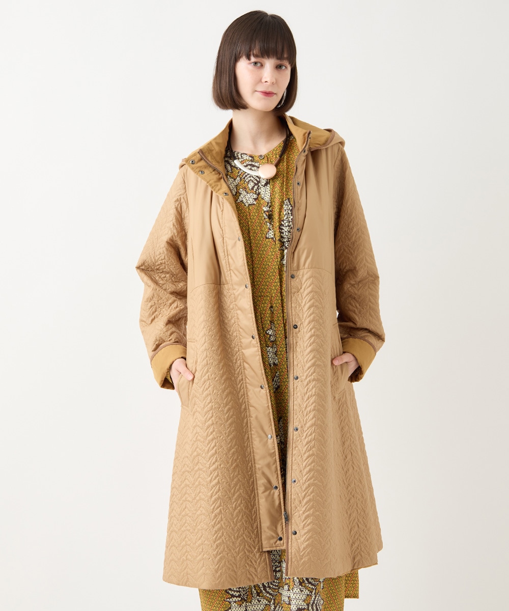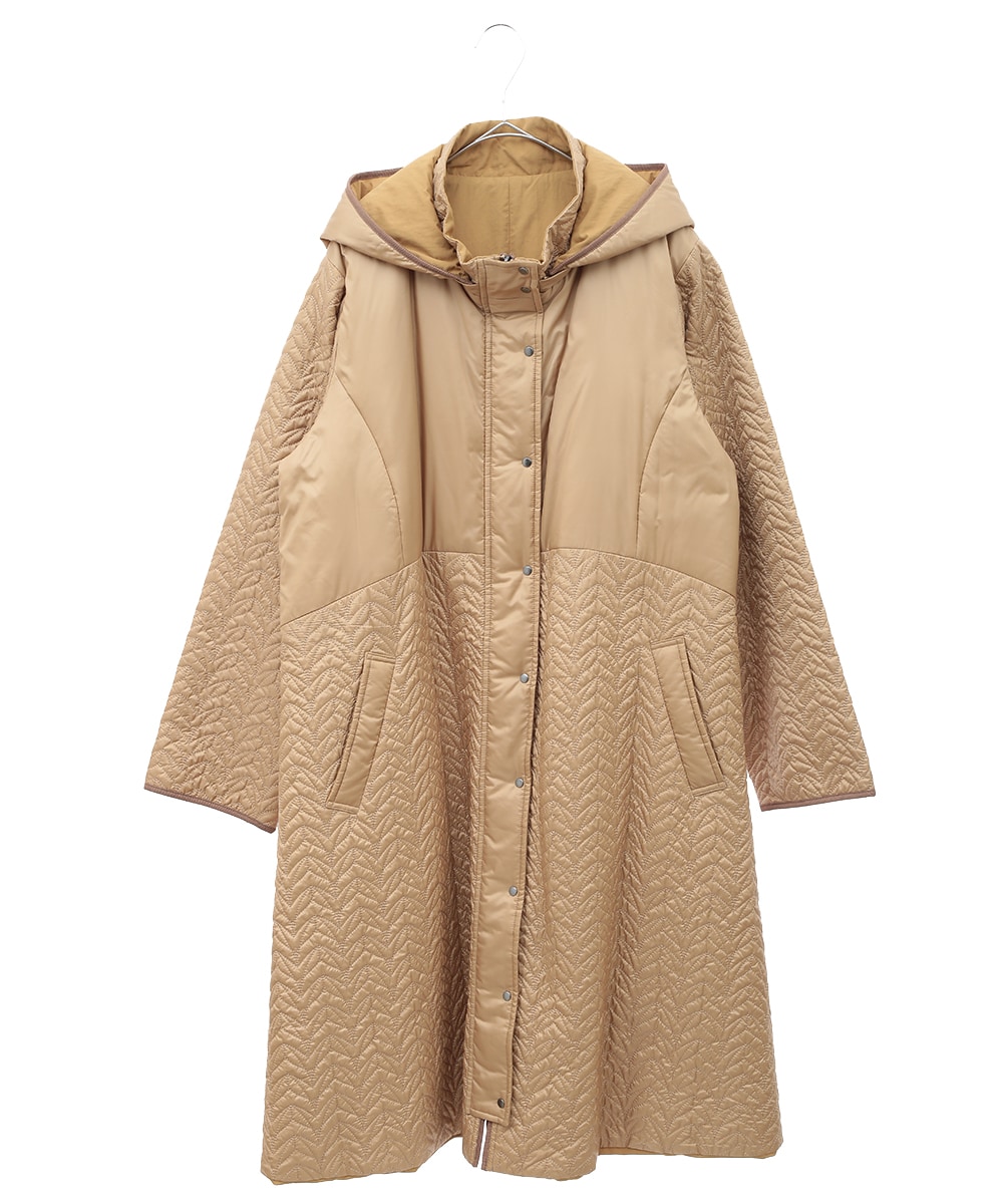 【大きいサイズ/2WAY】キルティングタフタフーディーコート