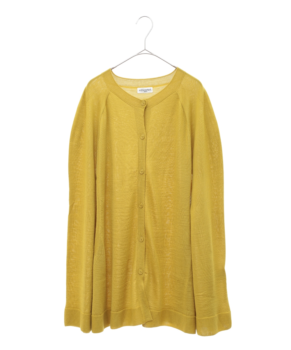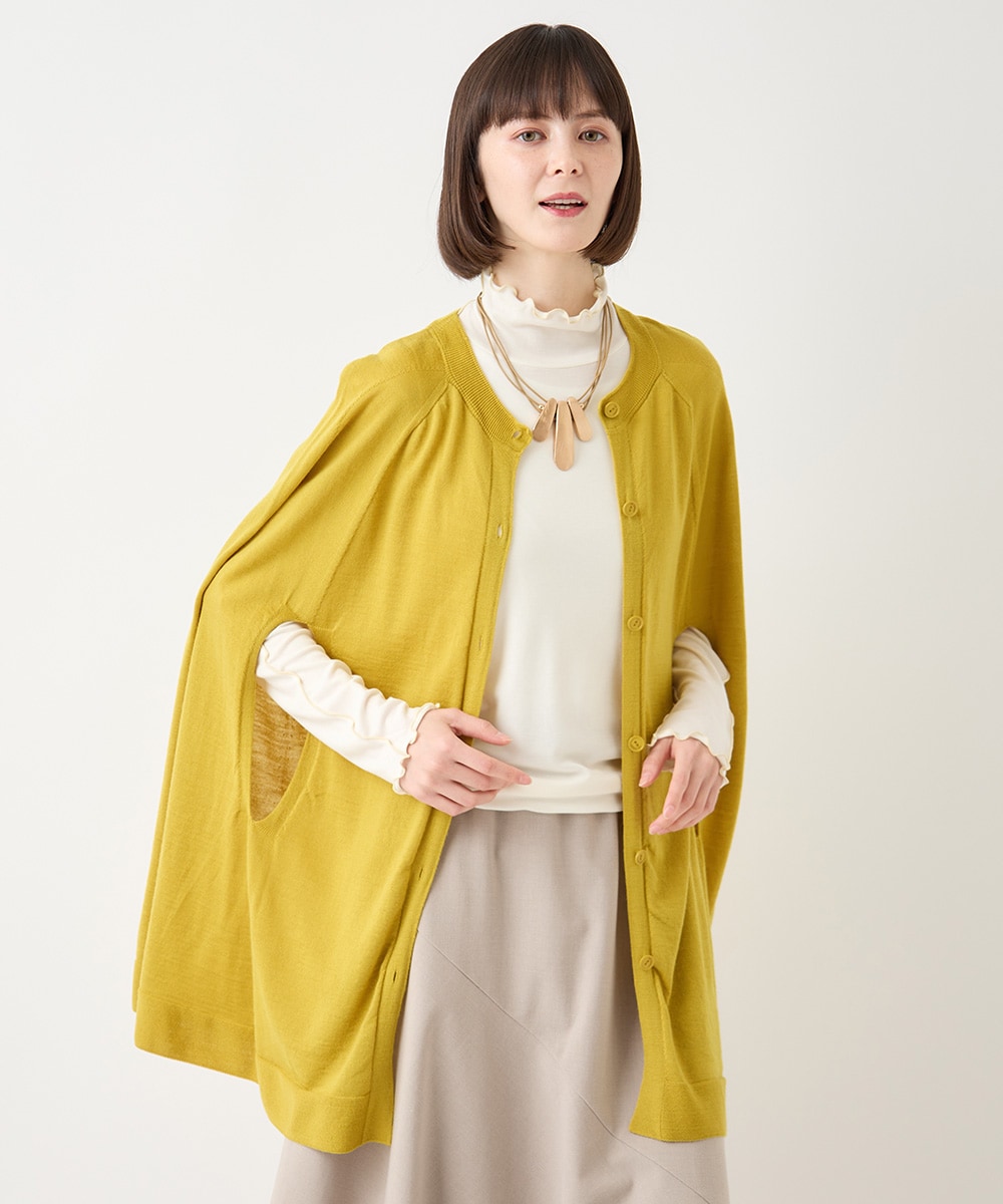 カーディガンはポンチョ風で、ちょっと変わったデザインです。薄手のニットなので、サラッと羽織れます。