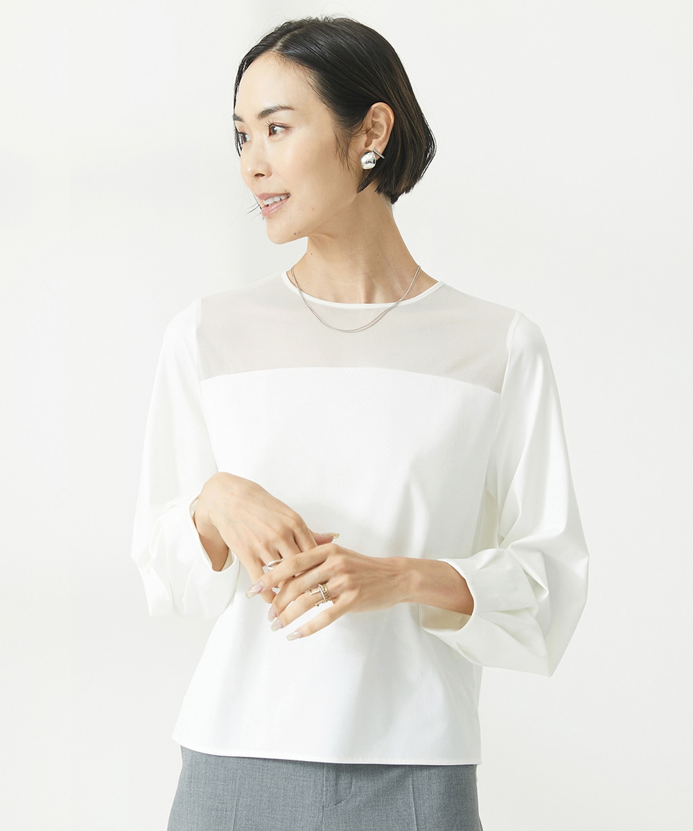 ヨーク部分がシアー素材で切り替えたカットソーです。