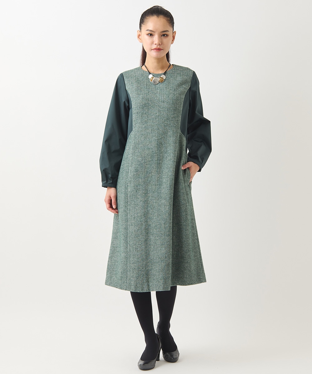 【大きいサイズ】ファンシーヘリンボーンドッキングワンピース