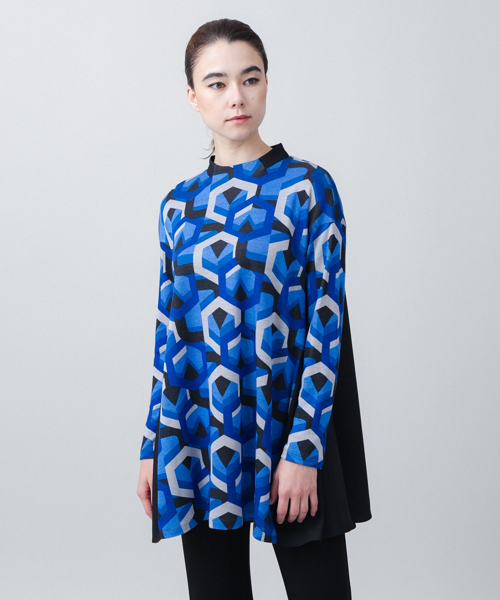 とても肌触りがいいテンセルリバージャージ素材に、幾何柄をプリントした生地で作ったチュニック。
