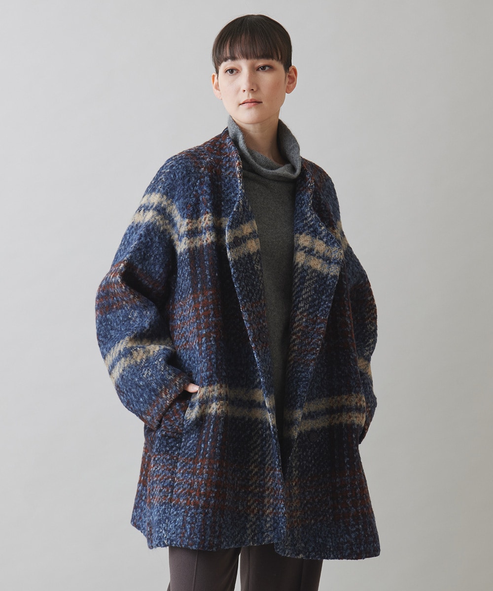 ビッグチェックウォームシャギーコートは見た目にビッグチェックがコーデのアクセントに…。ふっくらとした表面シャギーの優しい風合いと色合いのバランスが良いビッグチェック柄がポイントです。