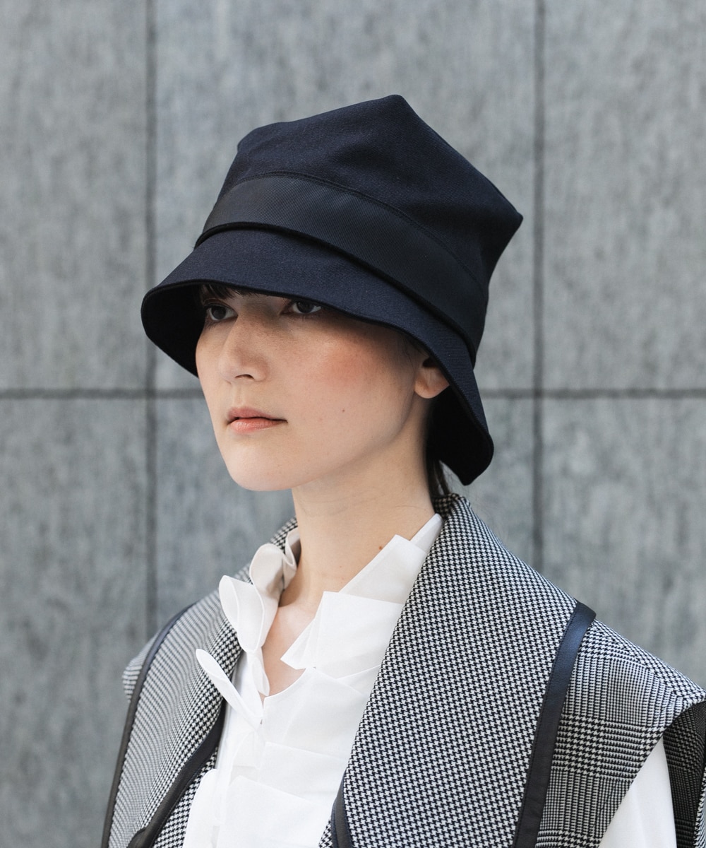 アシンメトリーハットでオシャレ度をアップさせ、エナメルがポイントのニットブーツで冬らしさをプラスしました。