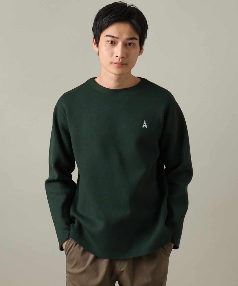 落ち着いたトーンのグリーンが取り入れやすい、人気のミニエッフェル塔刺繍ニットは、なめらかな肌触りで着心地も◎スウェットより上質で大人な印象になるニットは冬に絶対ゲットしておきたいアイテム!ボトムもアウターもベーシックカラーばかり、、、という方は、ぜひニットで差しカラーを取り入れてみて。