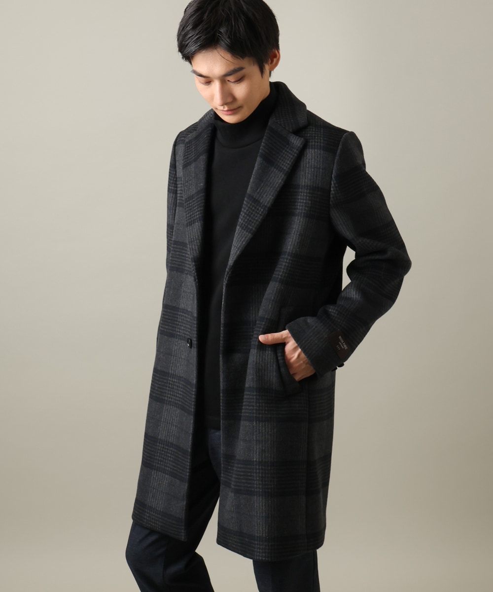 チェック柄のチェスターコートも、落ち着いた配色なので、ベーシックカラーはもちろん、カラーインナーでもとても綺麗になじみます!