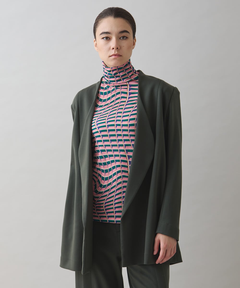 柔らかいテンセルポンチ素材のデザインロングジャケットです。程よい厚みがありながら、ソフトタッチで肌当たりの優しい着用感が魅力です。ヒップラインまでの程よい丈感はパンツ合わせで気軽に羽織っても便利にお使い頂けるアイテムです。