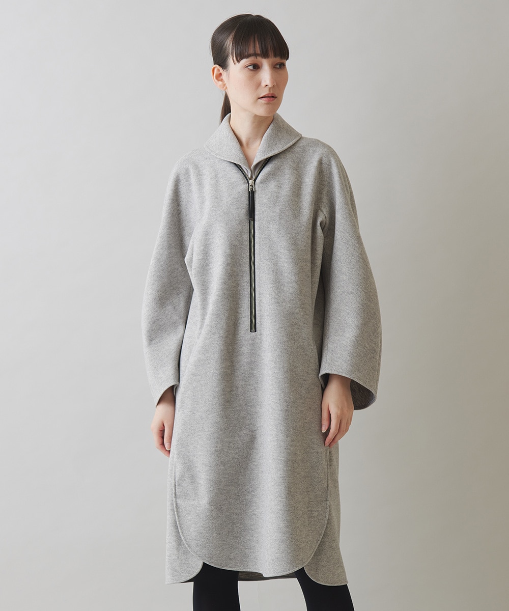 合わせたワンピースは斬新な裾のシルエットがヒロコらしく、前後差のあるヘムラインもポイントです。膝下丈で足が長く見えるのも嬉しいです。