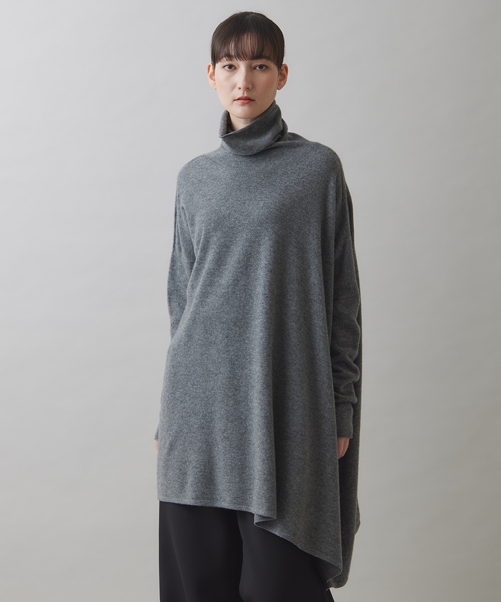 分量感のあるシルエットですがすっきりとしたお袖と左右アシンメトリーなデザインが軽やかさを演出します。