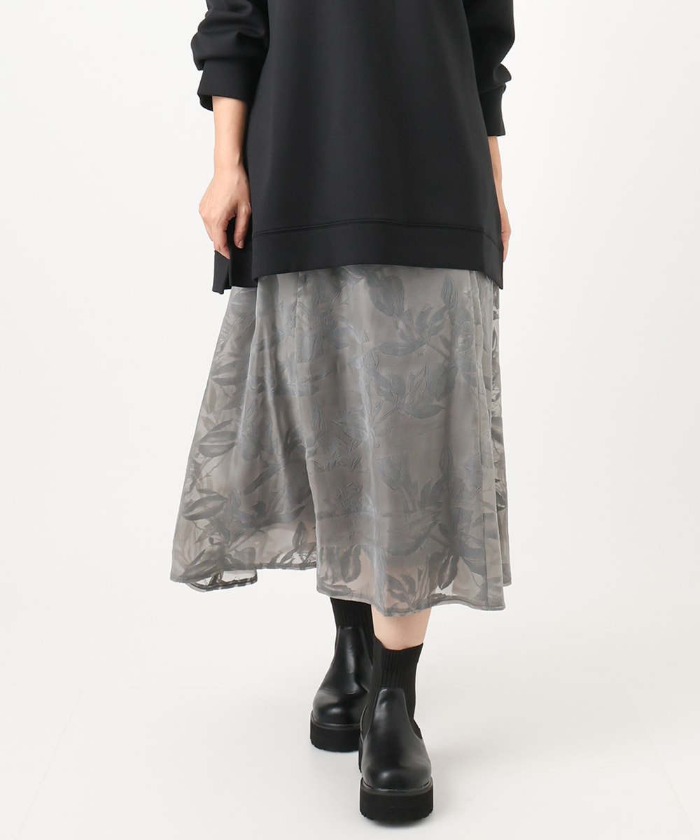 【大きいサイズ】オーガンジーフロッキープリントスカート