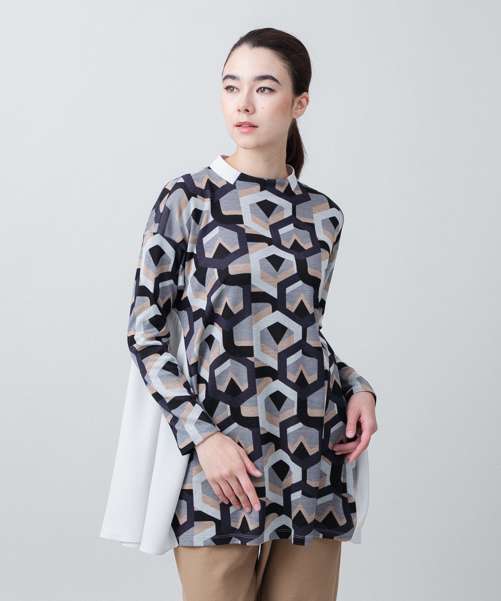 ジオメトリック柄ニットチュニック/日本製/洗える