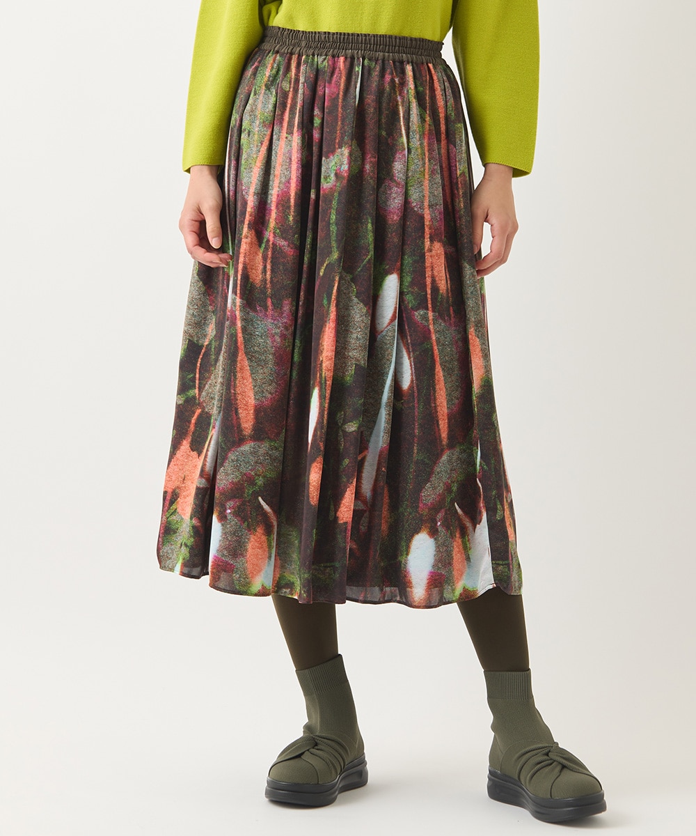 フラワープリントシルエットスカート /洗濯機で洗える