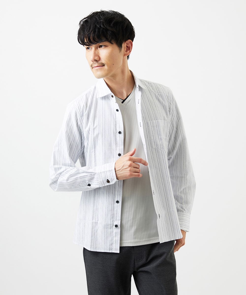 【洗える/日本製生地使用】シャドーバイヤスストライプシャツ
