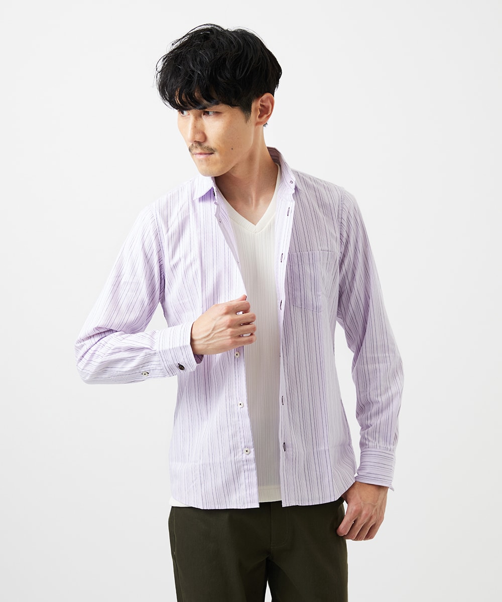 【残りわずか/洗える/日本製生地使用】シャドーバイヤスストライプシャツ