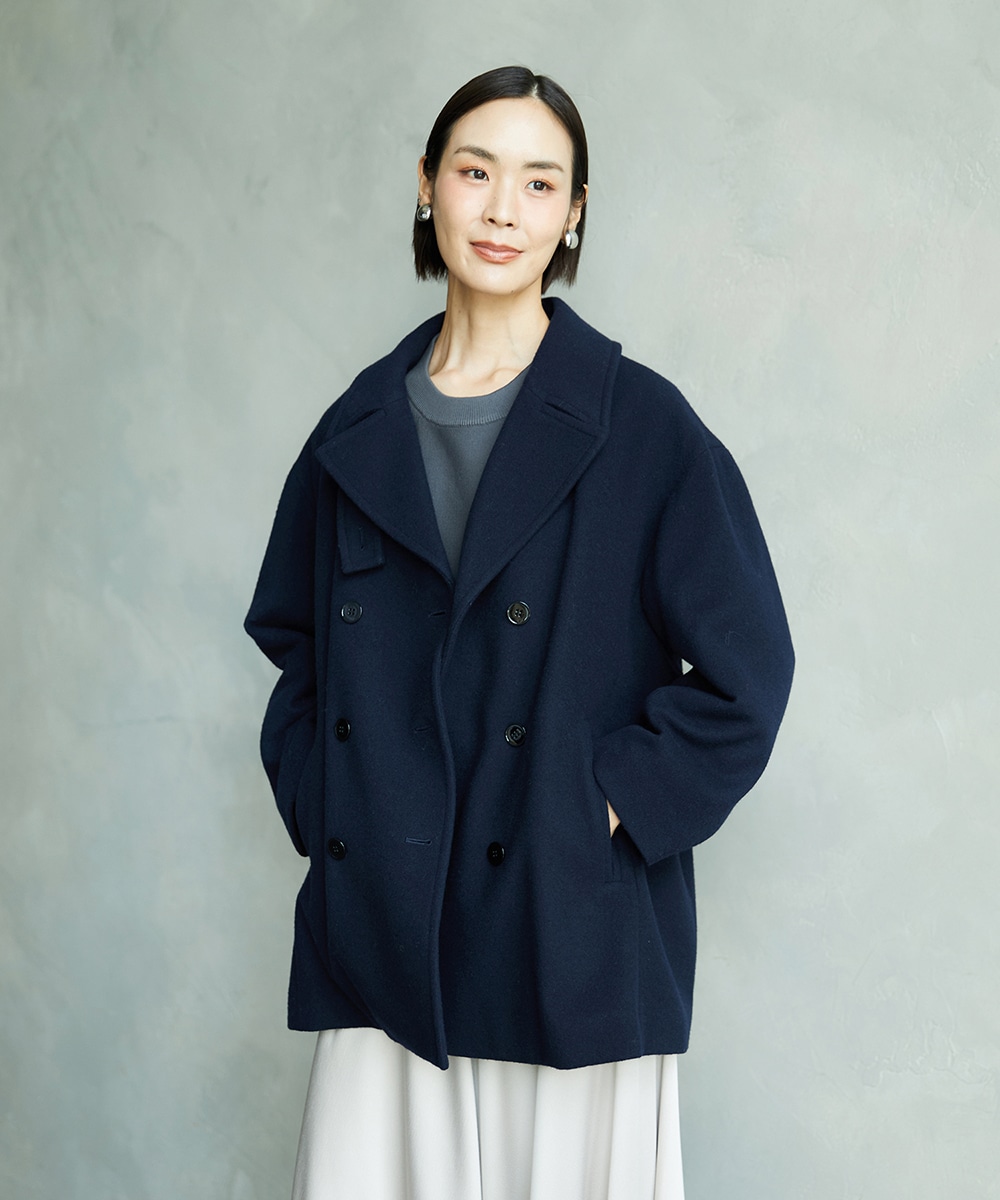 【春見え Pコートであったかコーデ】 スッキリVネックニットと こなれたワイドパンツに ネイビーのPコートを合わせて 春見えするあったかコーデ。 ウール100%素材のPコート。 リラクシーなシルエットで 軽くて暖かいイチオシコートです。 ゆったり着られるのでスタイリングを選ばず 正統派なPコートなら 通勤からカジュアルまで幅広く着回し可能。 ジャストサイズのコートより 肩周りが楽なので動きやすく◎ ジャケットの上にも羽織り易いです。 襟を立てて前を閉じるとまた雰囲気が変わり レディにもハンサムにも対応可能な 優秀アイテムです。 レーヨン✕ポリエステル素材の Vネックニットは 適度な肉感のある着心地良好! 着丈短めでサイドスリットが入っており 後ろが少し長めで安心。 ボディラインを絶妙に拾わないのに コンパクトに見えて◎ Vネックで小顔効果もありながら 開きが深く無いので体型に関わらず 一枚でサラッと着て頂き易いアイテム。 ボトムの形も選ばず着回し優秀な mori推しニットです! ポリエステル✕ポリウレタン素材の タック入りワイドパンツ。 今年らしいハンサム系のイチオシアイテム。 ハイウエストながら腰周りが緩めで 少し落としてはくのがポイント! そのラフな感じがよりこなれ感があり 美しいストレートラインが脚長効果◎ シルエットが美しいので お仕事からプライベートまで 幅広く着回し優秀アイテムです。 薄手で裏なしなので シーズン長めに着用可能。 今回は36サイズ着用で ウエストをベルトで押さえて 8cmヒールをはいてます。 ◆掲載商品の詳細は下記添付した 商品ページにてご確認下さい。 ●スタッフ私物 アクセサリー 靴