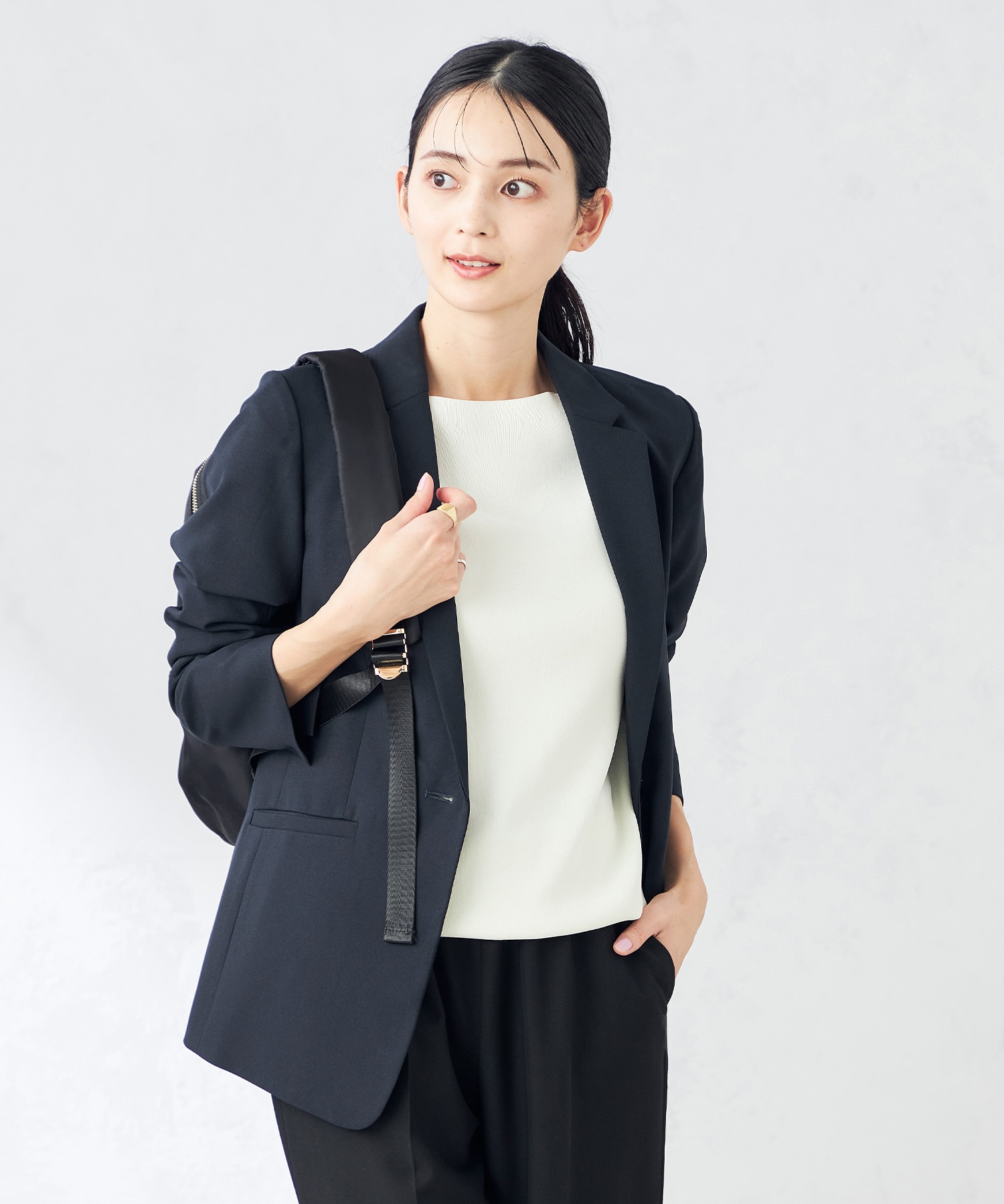 【洗える/ストレッチ/UVカット】麻調ストレッチテーラードジャケット