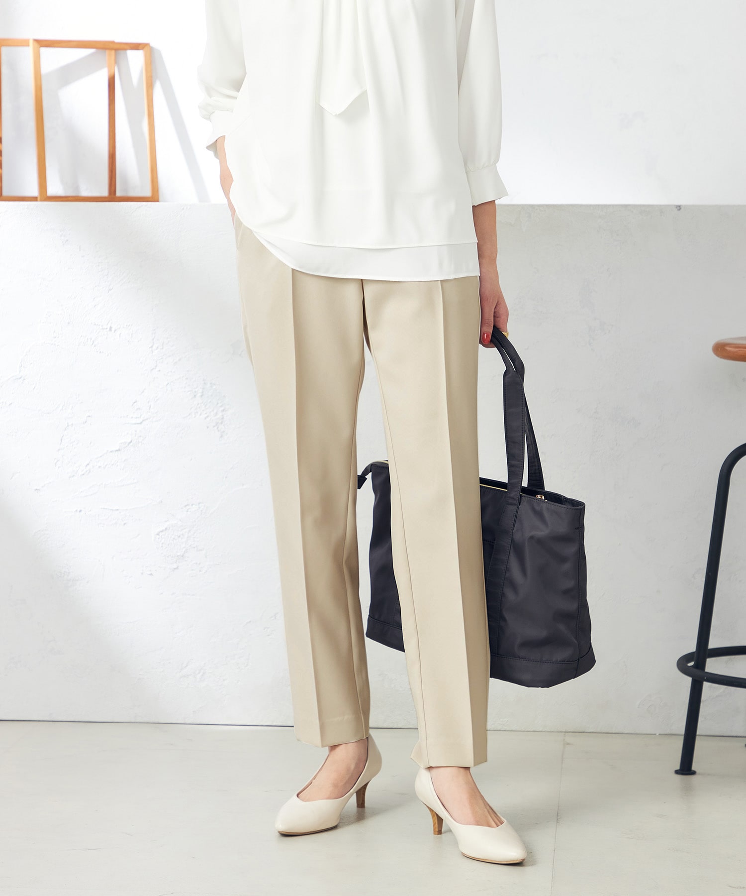 そして、同じく洗える【洗える/ストレッチ/UVカット】麻調ストレッチテーパードパンツは、きれいめなシルエットで脚を美しく見せるデザイン。