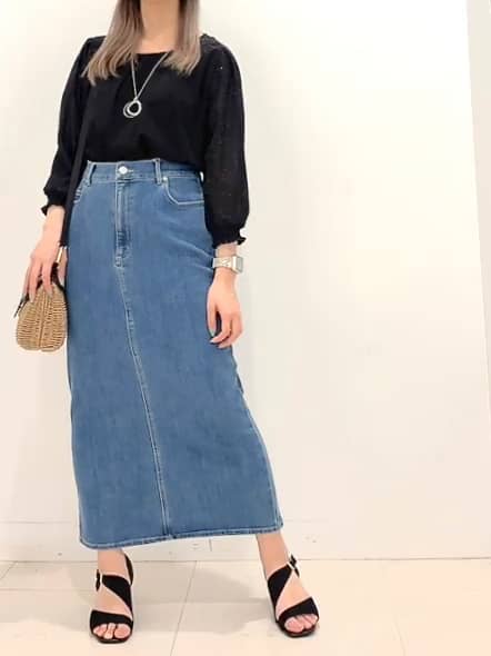 シーズンレスに使えるのが嬉しい、着回し抜群なデニムナロースカートです!